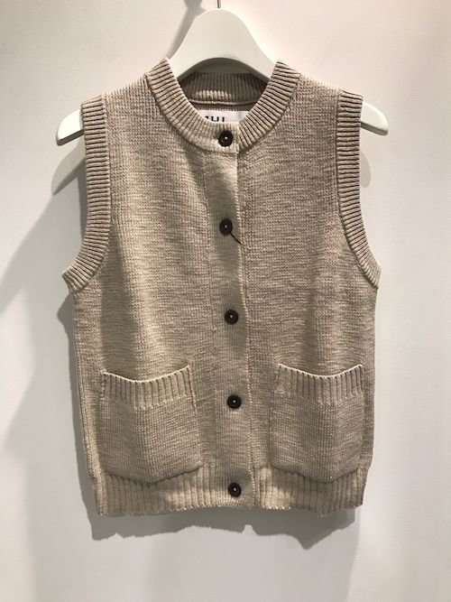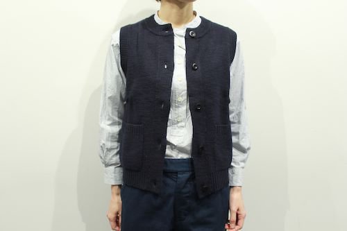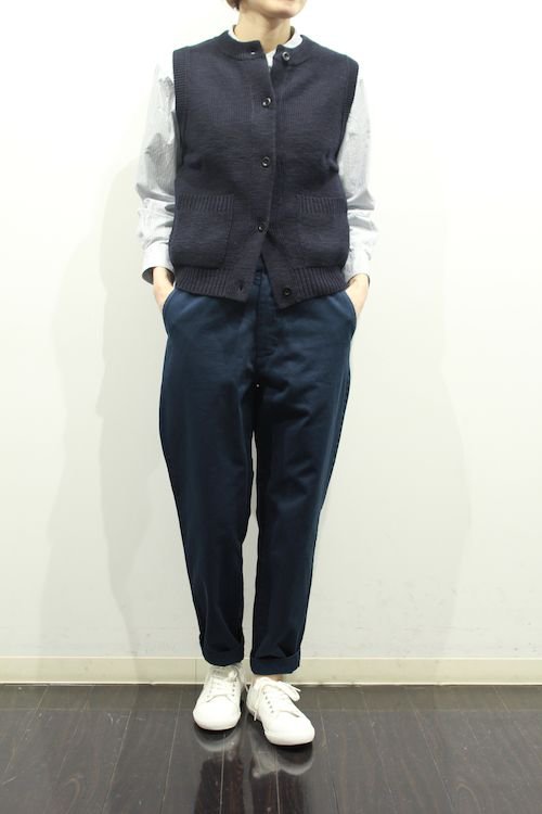 シャツやカットソーなどとのスタイルでさりげなく立体感を出す天竺素材のベスト。