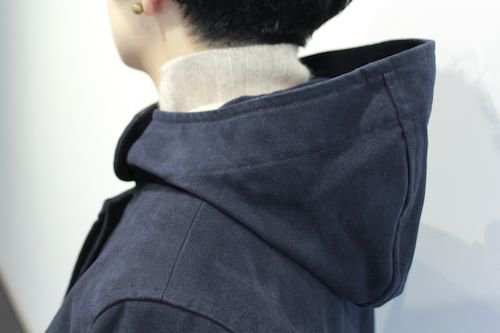 昨年も好評だったモールスキンのコートを今季はダークネイビーで展開。