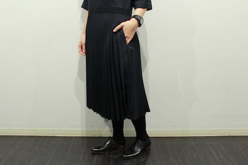 加工する際に別の素材を重ねてプリーツをたたむ事でマーガレットハウエルらしい、柔らかみのあるプリーツに仕上げています。