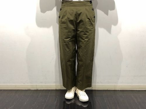 ウエストのサイドボタンのデザインがポイントのセーラートラウザー。