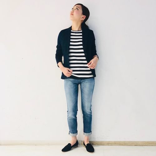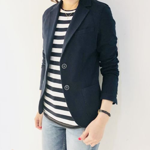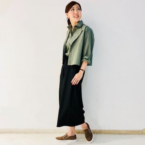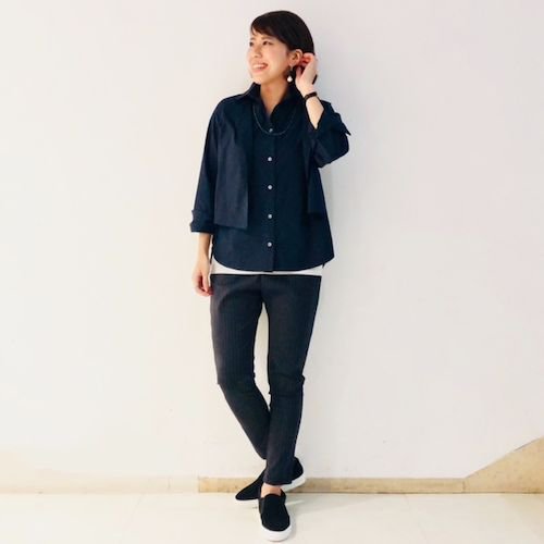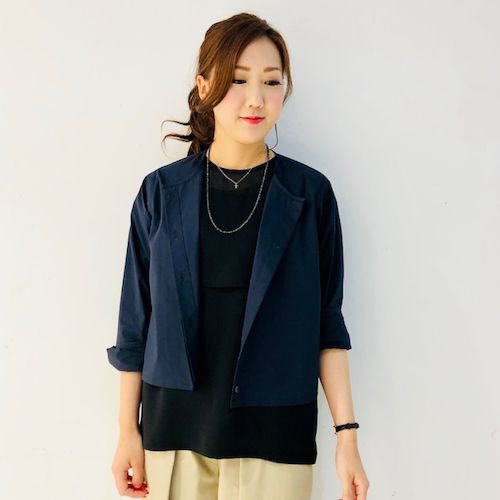前側はボタンなしでささっと羽織って様になります(*^_^*)