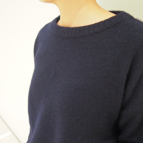 カシミヤ×シルクの生地に、カシミヤ×シルクの別色の糸を、