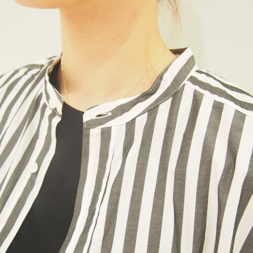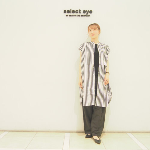 新作 UNIVARSAL TISSU のストライプチュニックは