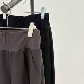 お直しいらずのパンツで、ワイドですがスッキリ見えます!