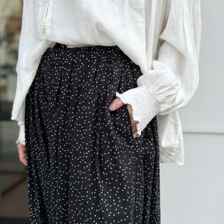 tops:ドットプリントフレンチリネン バンドカラーブラウス 17600yen new!!