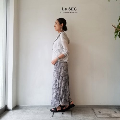 エレガントなロングスカートと、軽い素材のブルゾンの組み合わせ