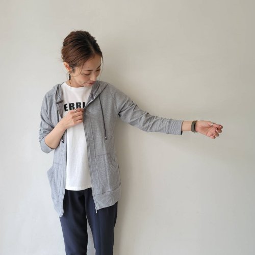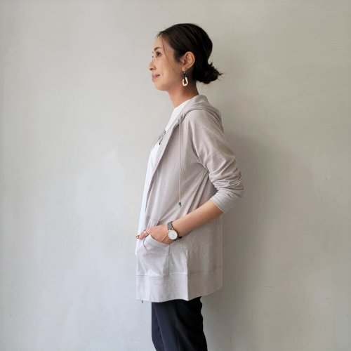 柔らかい天竺生地で、パーカーって結構珍しいかもなあって思います。