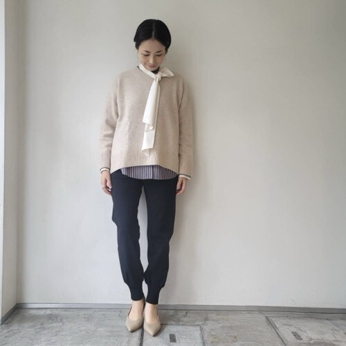 Vのネックのバランスが計算づくしなすっきり見えニット。。