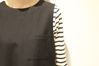 そして英国羊毛混の紡毛の3種類の原料を使ったMHLオリジナルヤーンを使用したウールサージのジャンバースカート。