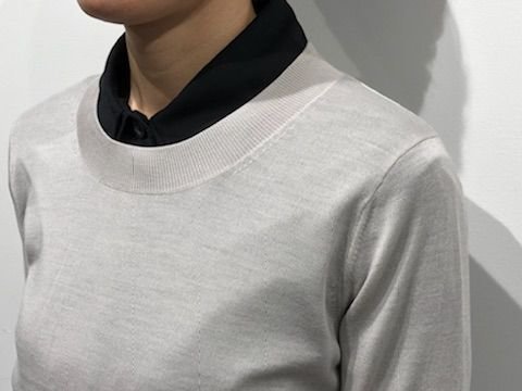 衿リブが太めがポイントのクルーネックニットです。