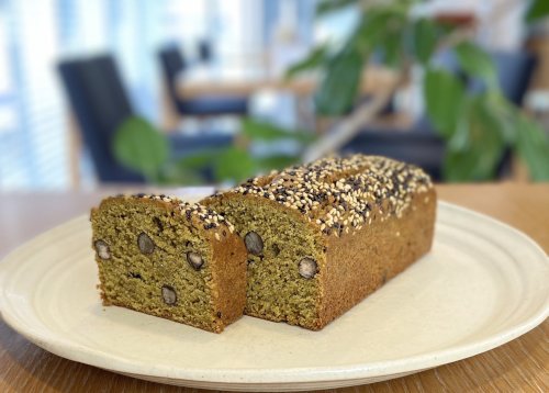( ↑↑ 深蒸し茶と赤えんどう豆のパウンドケーキ )