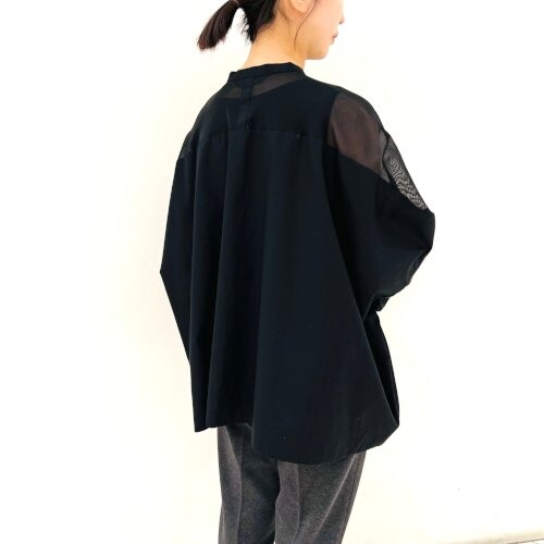 【 sheer voile mix stand collar wide shirt 詳細 】