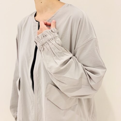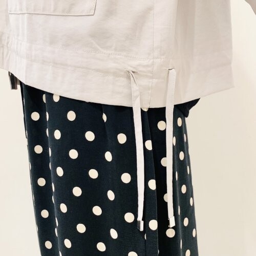 ブルゾンには、女性らしい生地感を合わせるのが好きです。