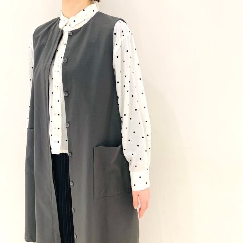 ジレは前のボタンを閉じるとワンピースに!