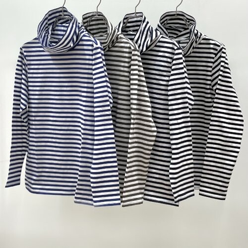 ハイネックの首元ゆったりボーダーが