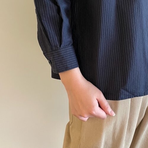 シャツ特有の窮屈感がバストや腕周りにないのが、