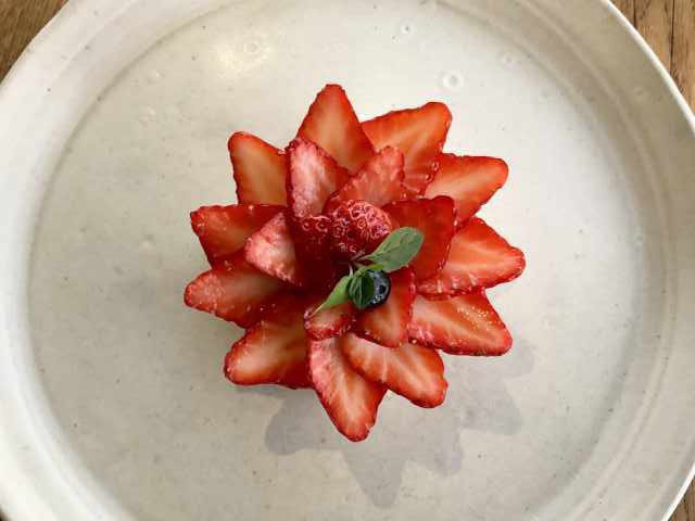 トマトの酸味をまろやかにするため、生クリームをかけた*