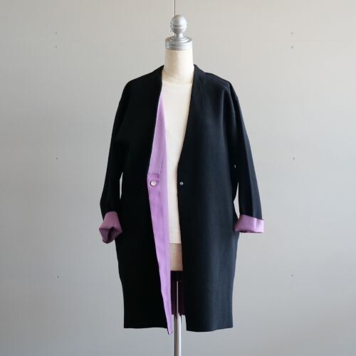 ちょっぴりアウター感覚にもお使いいただける配色カーデ。