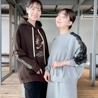 スウェット生地に品の良いシックなレース、