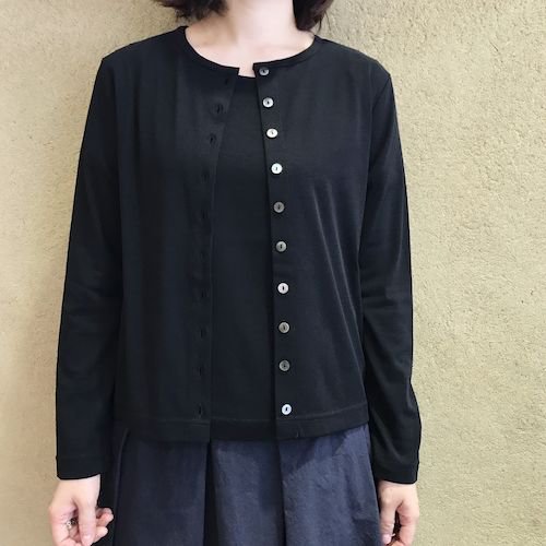 カーディガンも、ニットではなく、カットソー素材というところがポイントです。