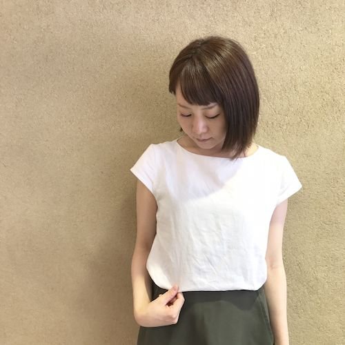 \襟ぐりも、カーディガン合わせしやすい開き方/