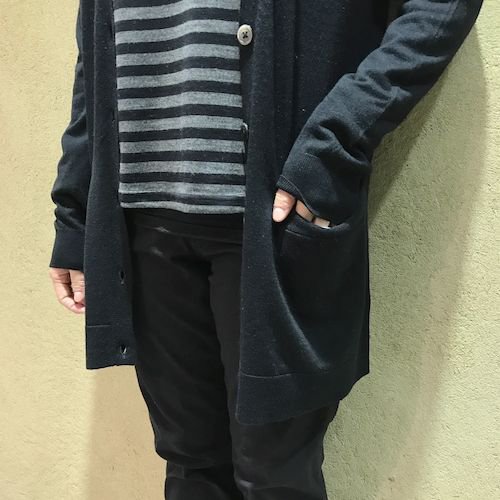 Vネックなので、前開けてサラッと羽織るとスッキリ