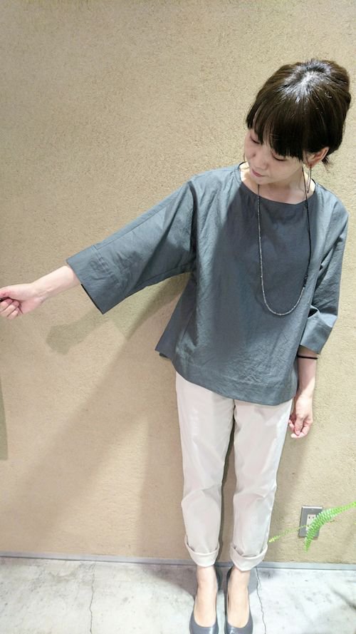 このストライプのブラウスの色違いバージョンです(*^_^*)