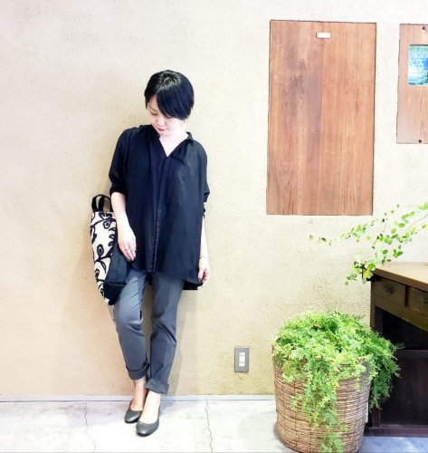 こういう軽い素材感のブラウスで、