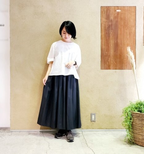 ミドル丈で、お尻は隠しつつ、ロング丈ではないので、軽やかな印象に♡